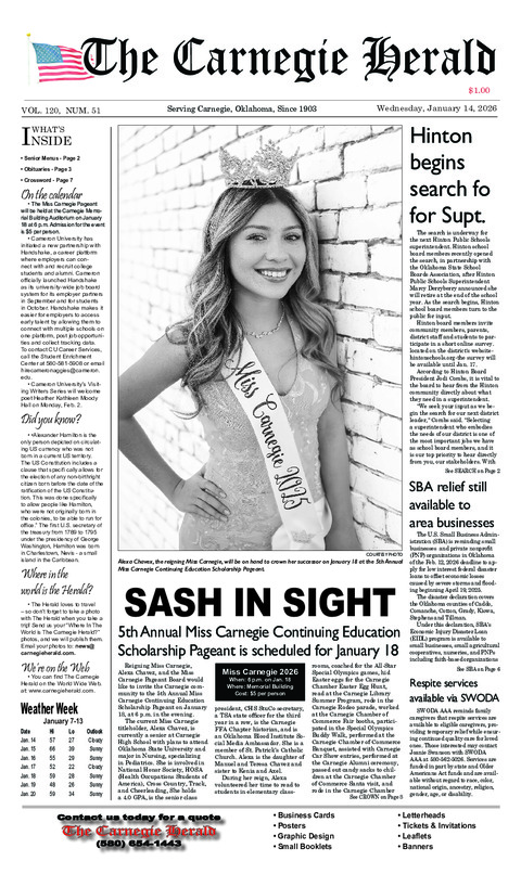 Reigning Miss Carnegie, Alexa Chavez, and the Miss Carnegie Pageant Board would like to invite...